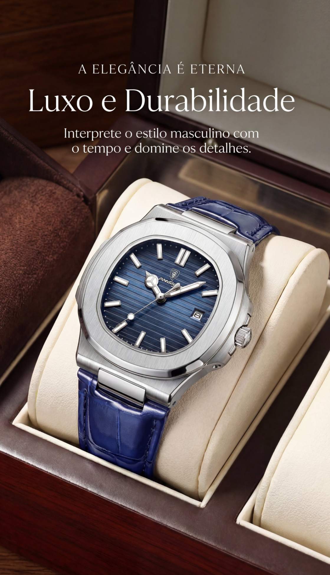 O AUREN CLASSIQUE™ é a união perfeita entre tradição e sofisticação. Com pulseira de couro legítimo e caixa em aço inoxidável premium, este relógio traduz a essência da elegância masculina em um design clássico e imponente, feito para quem valoriza estilo, confiança e presença.